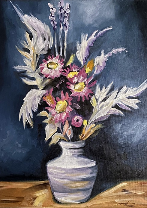 White Vase and Flowers 12 x 16 Oil