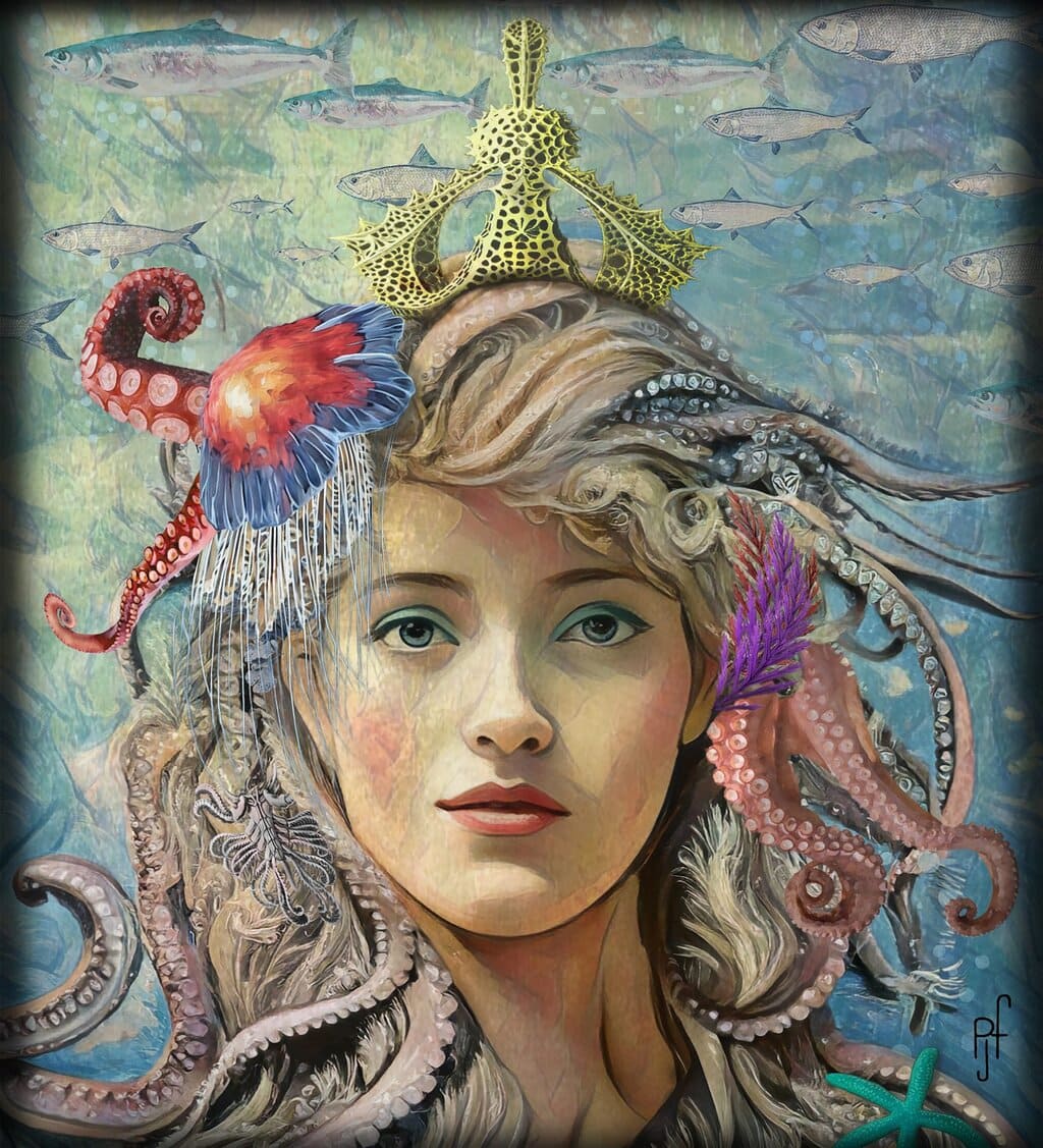 Unique digital artwork,adorned with semi-precious stones.Elegantly sealed in a glossy silicone finish.